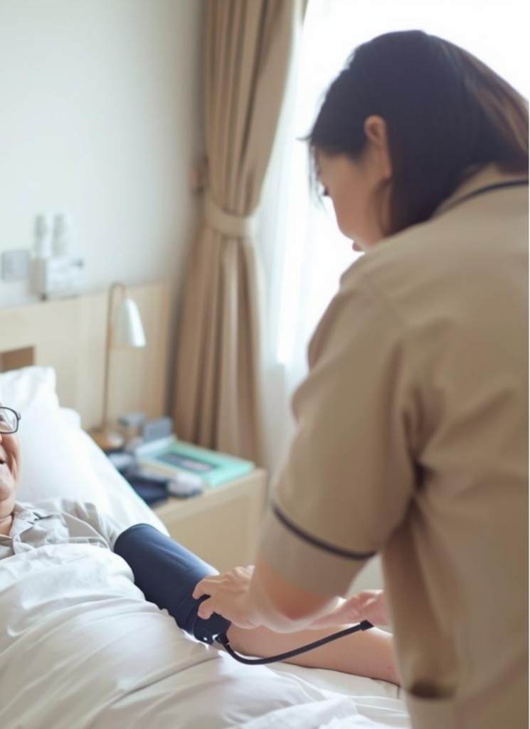 病状の観察、薬の管理、人工呼吸器をつけた方やカテーテル等の管理などの、医療的介入が必要な方、緩和ケアを必要とされる方など管理やアドバイス等、利用者さんとご家族が安心して過ごせるようにサポートします